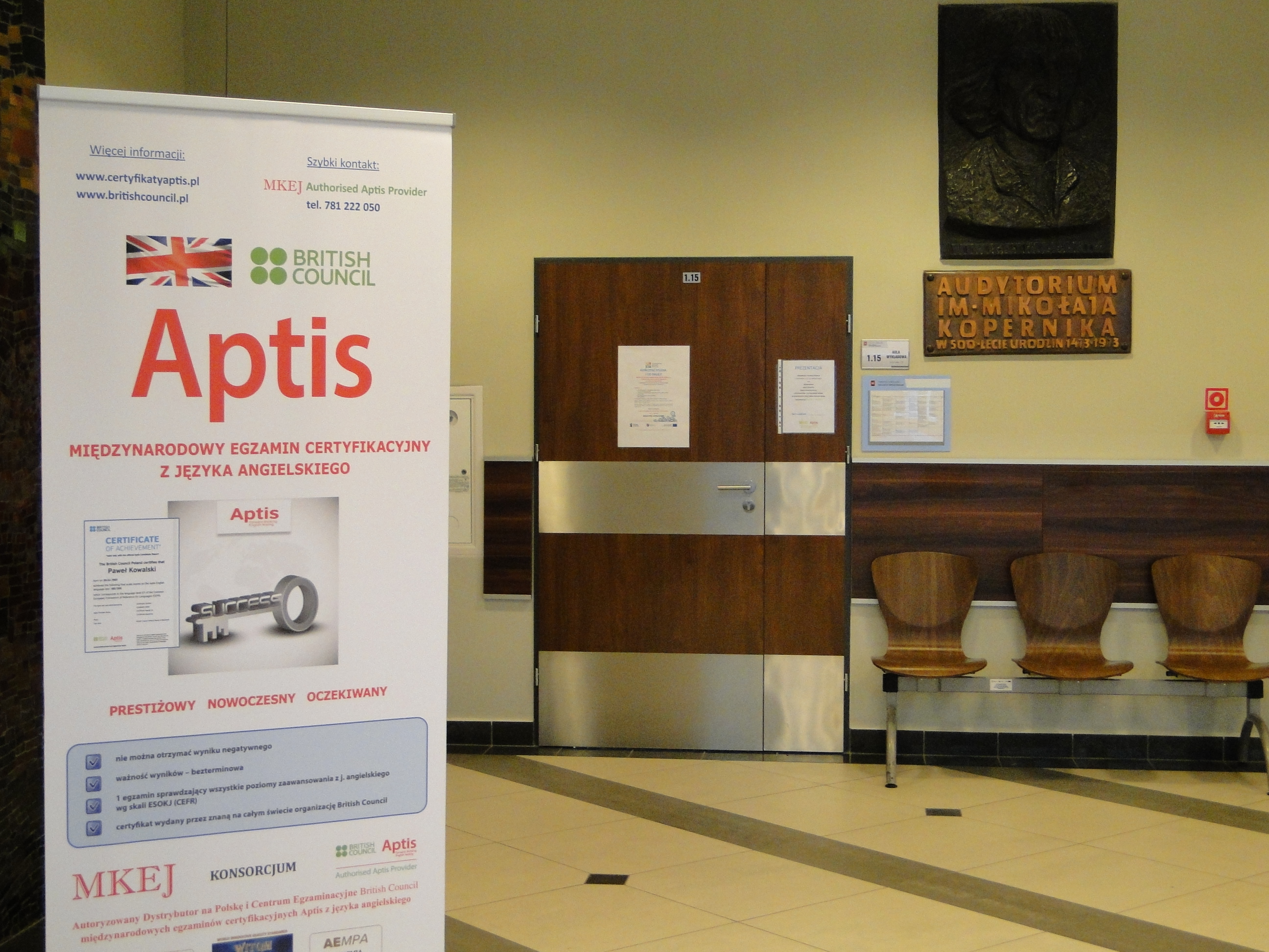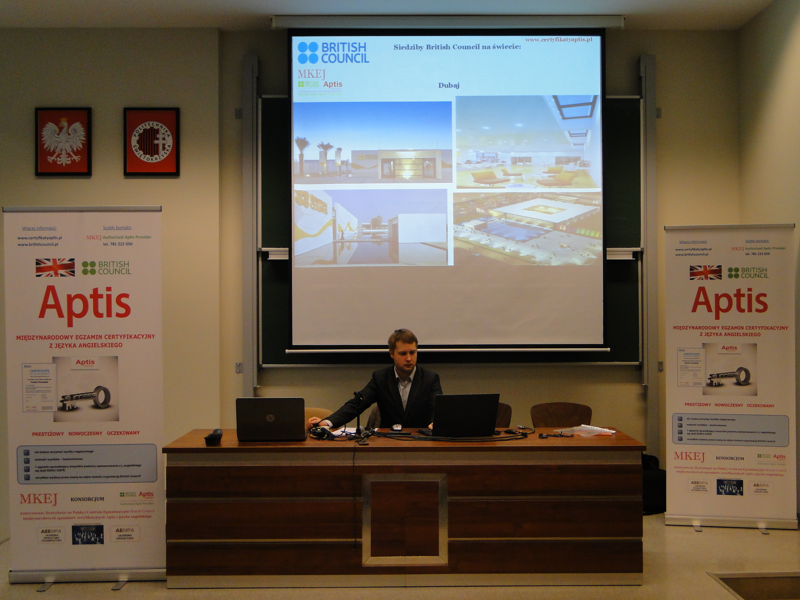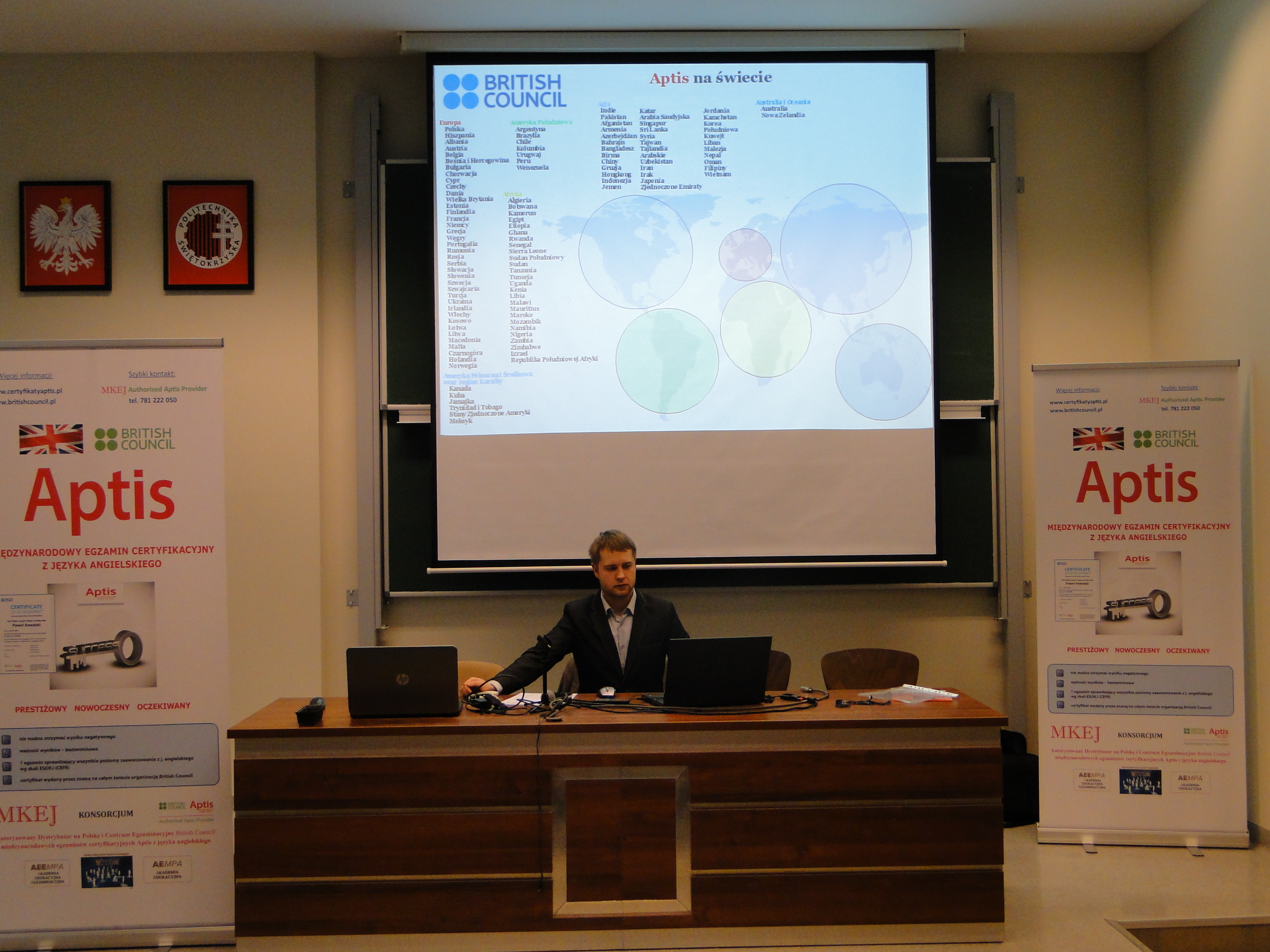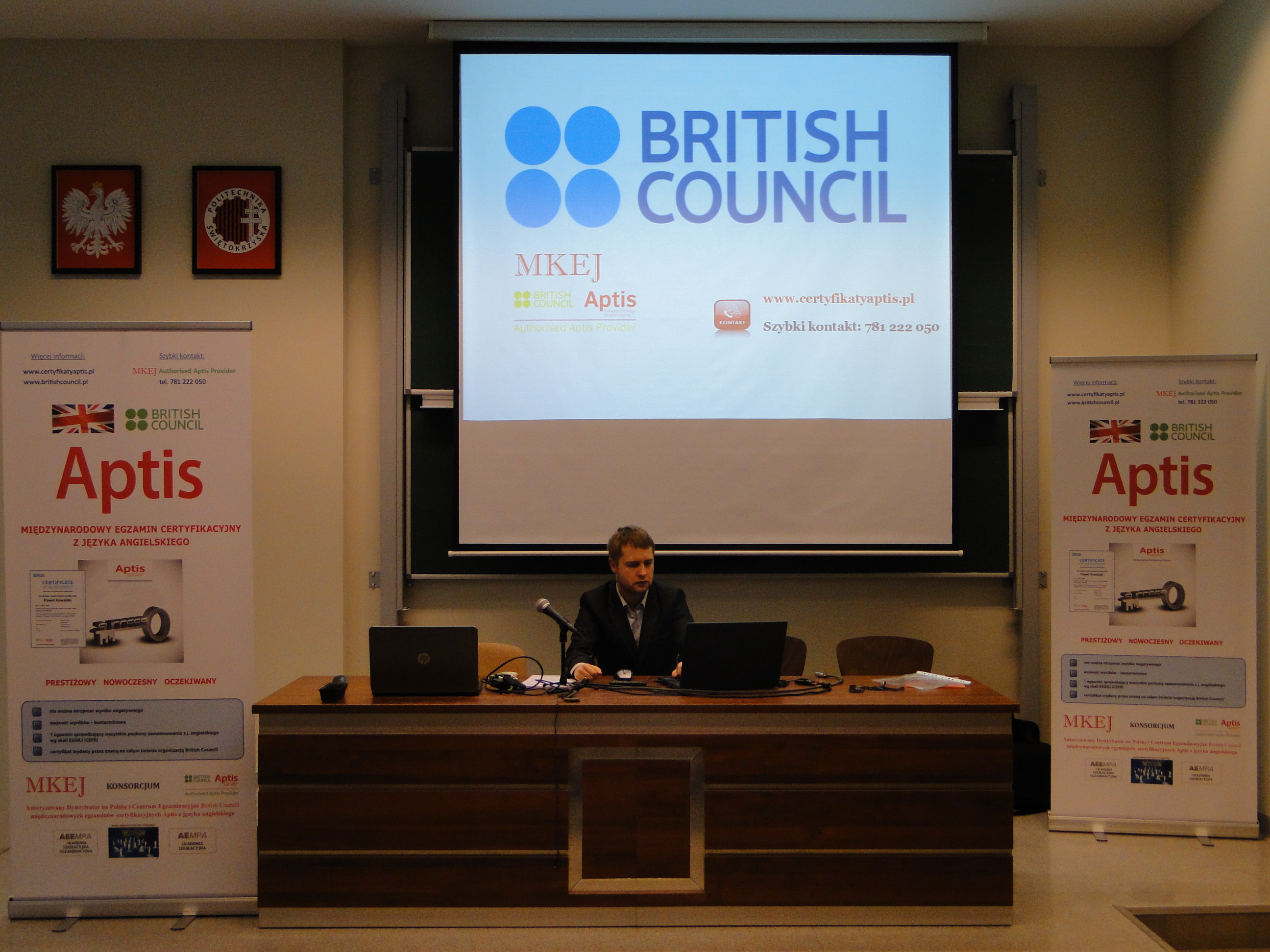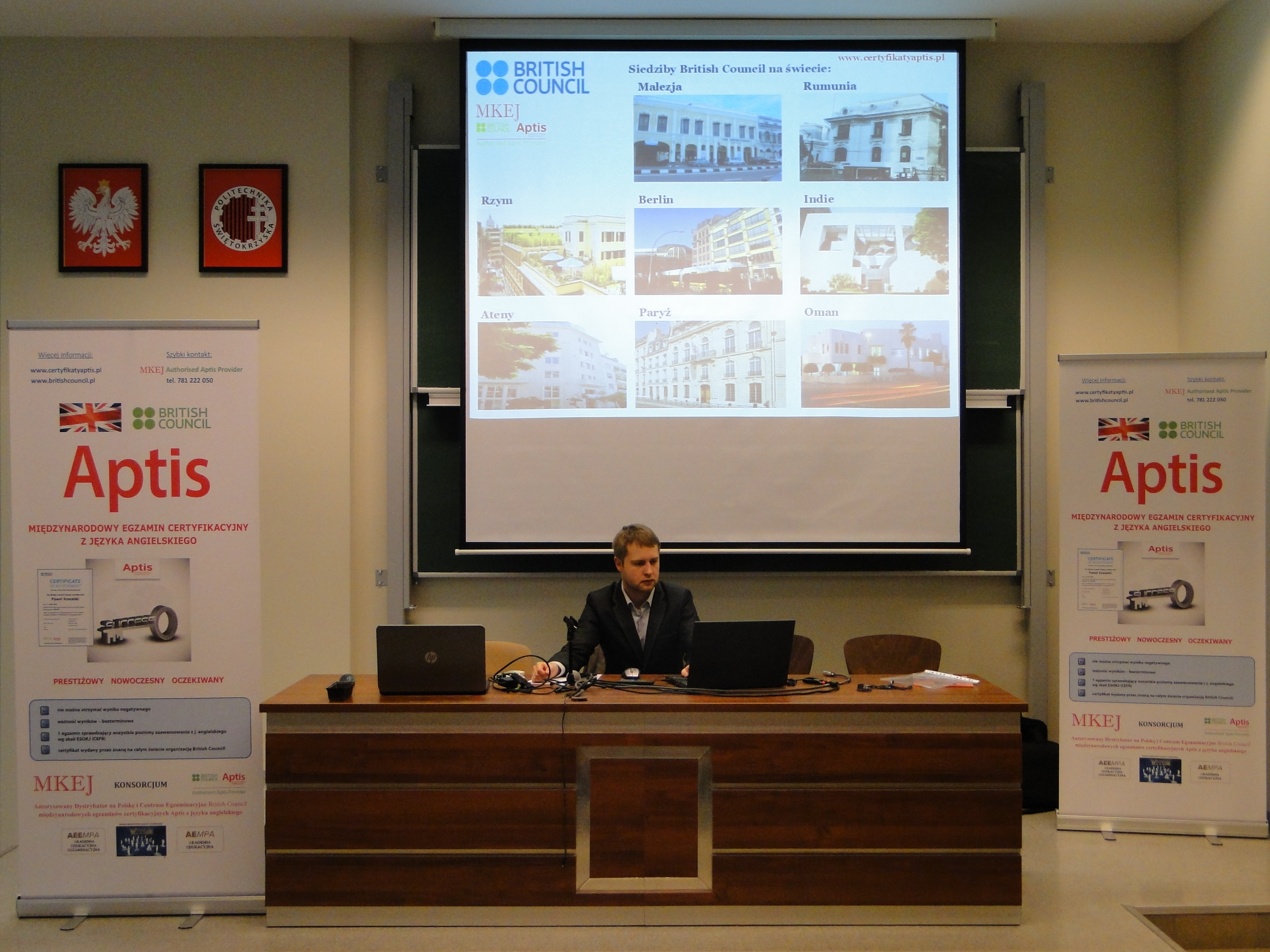 W dniu 16 listopada 2016r. w audytorium im. Mikołaja Kopernika na Politechnice Świętokrzyskiej w Kielcach odbyło się spotkanie przedstawicieli MKEJ Authorised Aptis Provider ze studentami oraz pracownikami w/w Uczelni poświęcone międzynarodowym egzaminom certyfikacyjnym Aptis z języka angielskiego organizacji British Council.